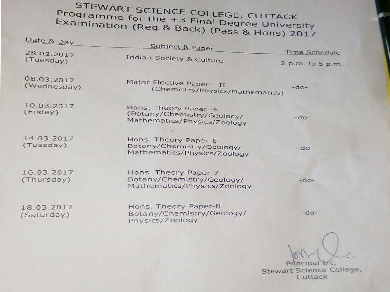 Practical Programme for +3 1st Year 1st Semester University Examination,2017