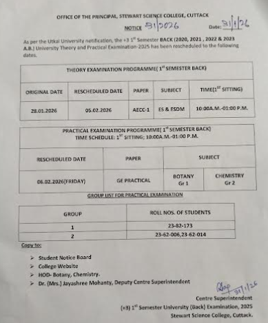 +3 Ist Semester Back Paper Exam Reschedule date