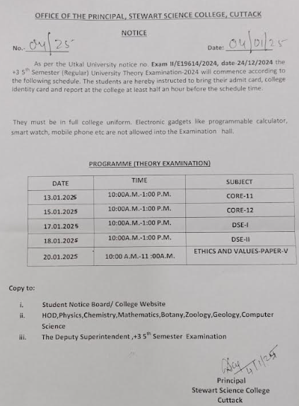 5th Semester University Exam