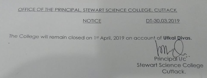 College will remain closed on 01.04.2019