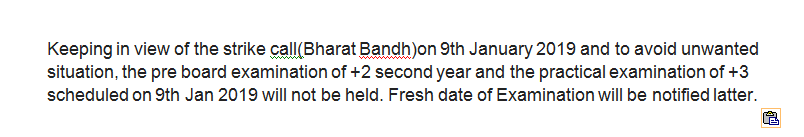 Due to Bharat Bandh on 9th January 2019 there will be no exam.