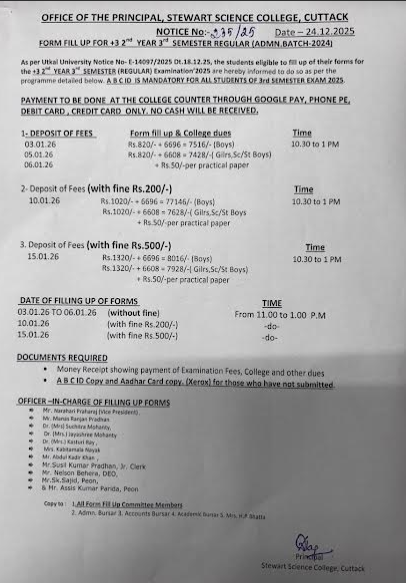 Exam Fee 3rd Semester UG
