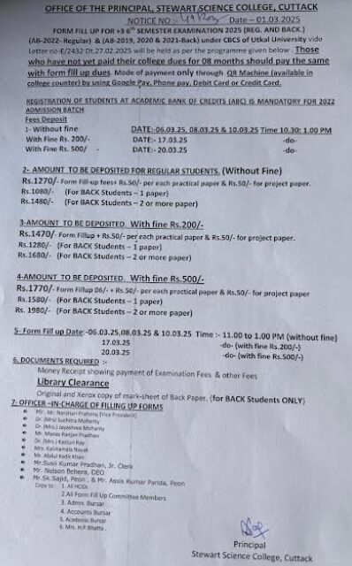 Form Fill Up 6th Semester Regular & Back