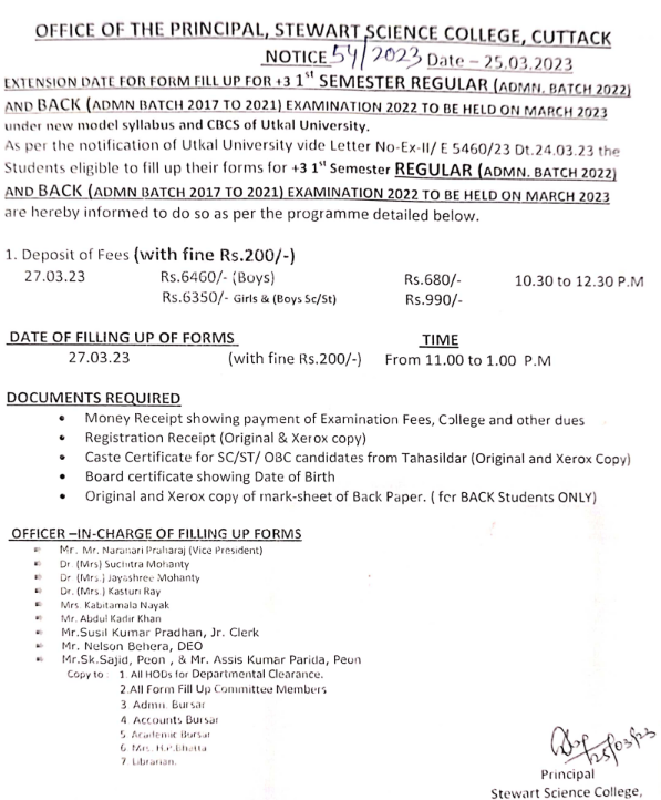 Form fill up of +3 Ist semester Admission Batch 2022