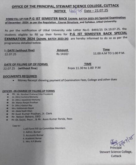 Form Fill UP PG Ist Semester (Back)