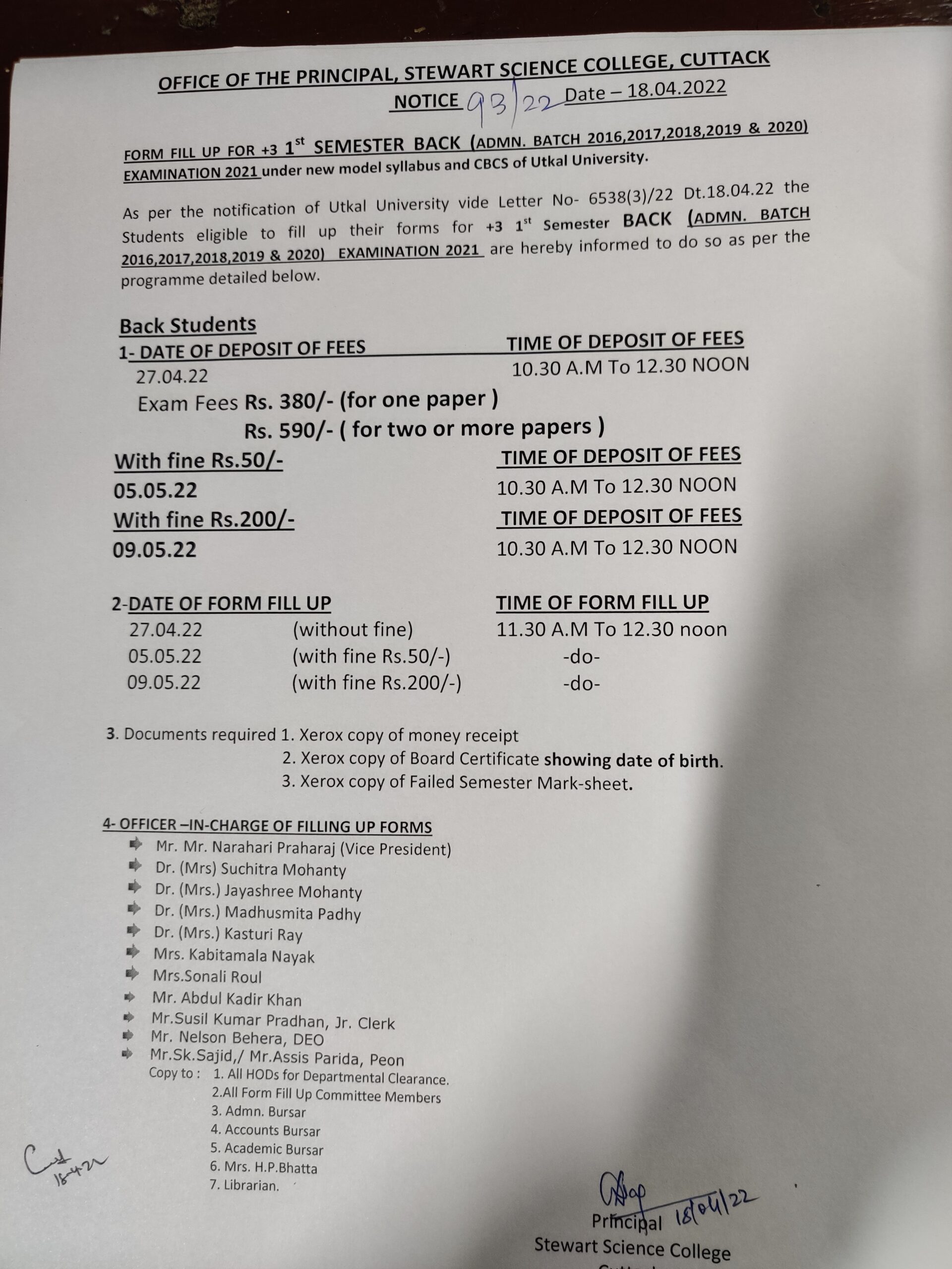 Form Fillup Of +3 Ist Semester Back