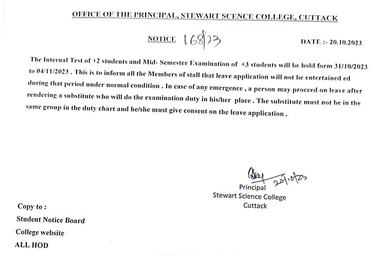 Internal Test and Mid semester exam