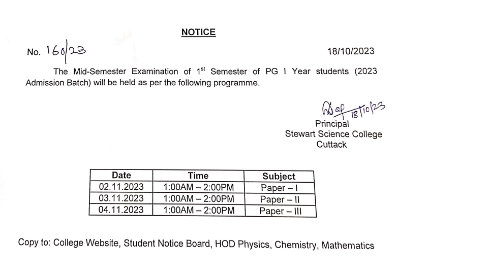 Mid Sem Examination PG Ist Yr.
