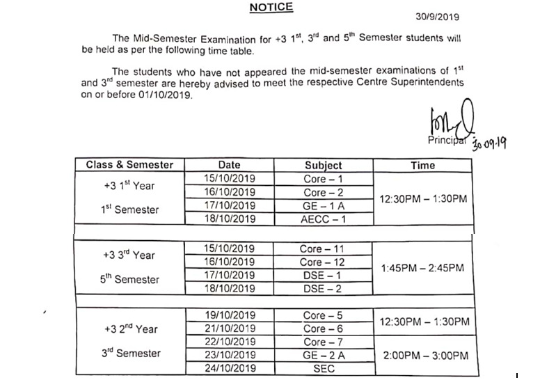MID-SEMESTER EXAMINATION FOR +3 1st,3rd & 5th SEMESTER STUDENTS