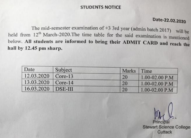 MID-SEMESTER EXAMINATION OF +3 3rd YEAR