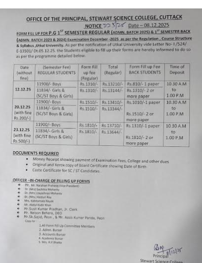 Introducing P.G Courses in Physics, Chemistry and Mathametics