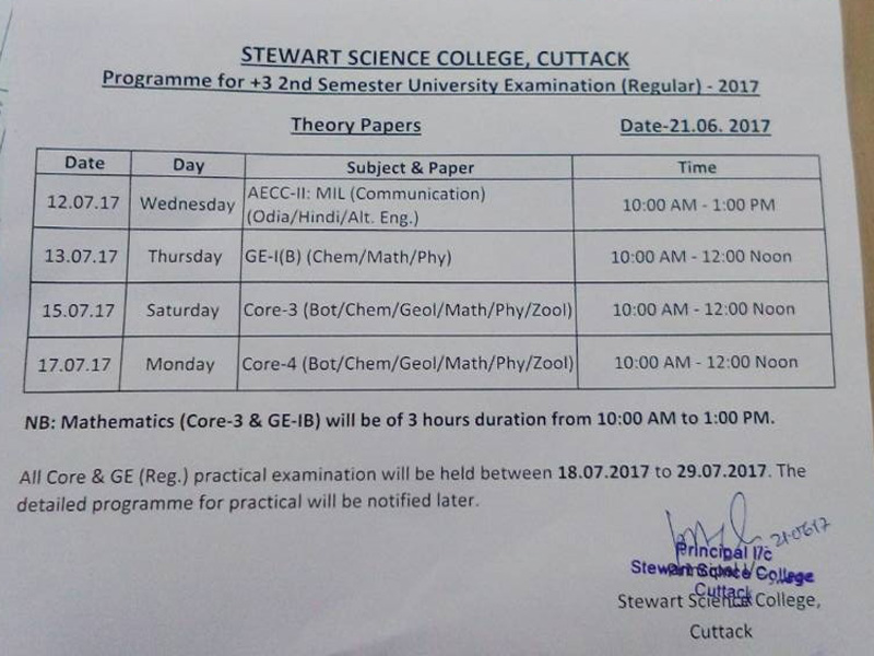 Programme For The +3 Second Semester(Regular) University Examination, 2017