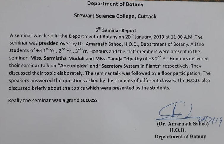 REPORT OF THE SEMINAR HELD AT DEPARTMENT OF BOTANY ON 20.02.2019