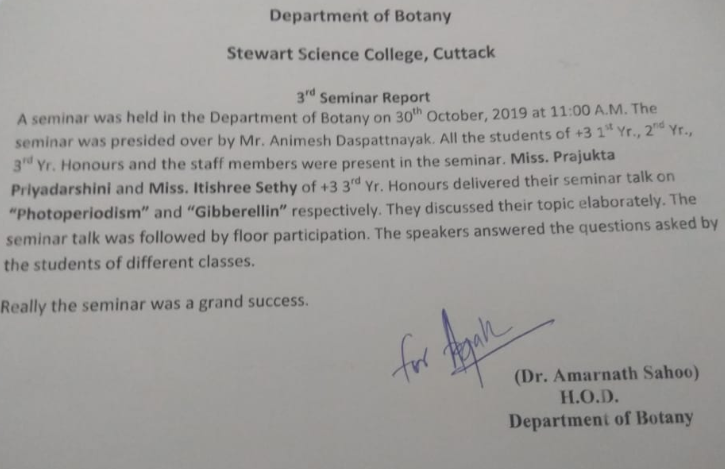 REPORT OF THE SEMINAR HELD ON 30.10.2019 AT BOTANY DEPARTMENT