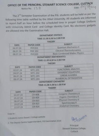 Introducing P.G Courses in Physics, Chemistry and Mathametics
