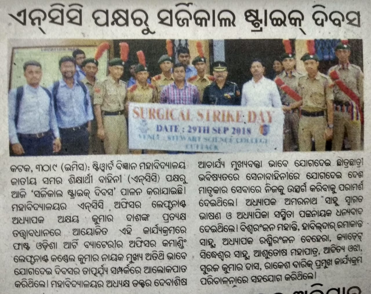 Surgical Strike in News Paper Samaya dt.01.10.2018